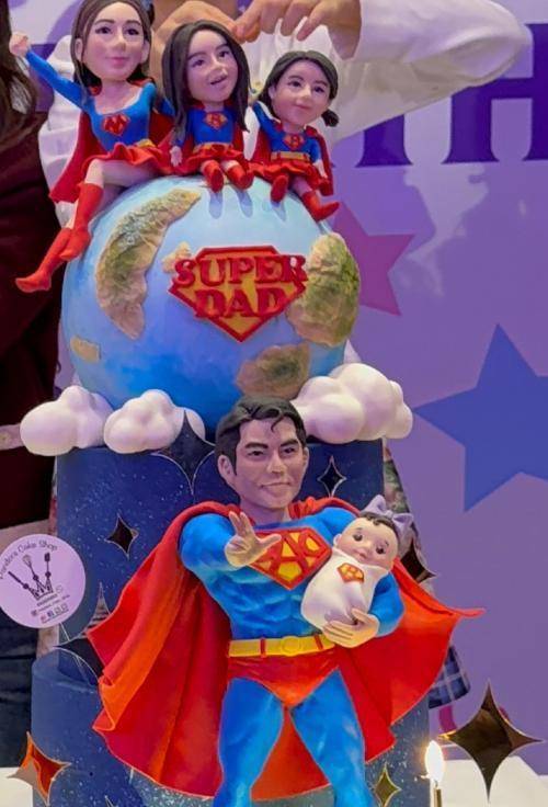 而男方则以“超人”的形象站在最前面,这让网友们联想到,他像超人一样保护着妻子和三个女儿。